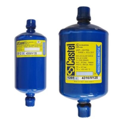 Castel Line Filter Drier is a high-efficiency filtration device designed to remove moisture, acids, and contaminants from refrigeration and HVAC systems.